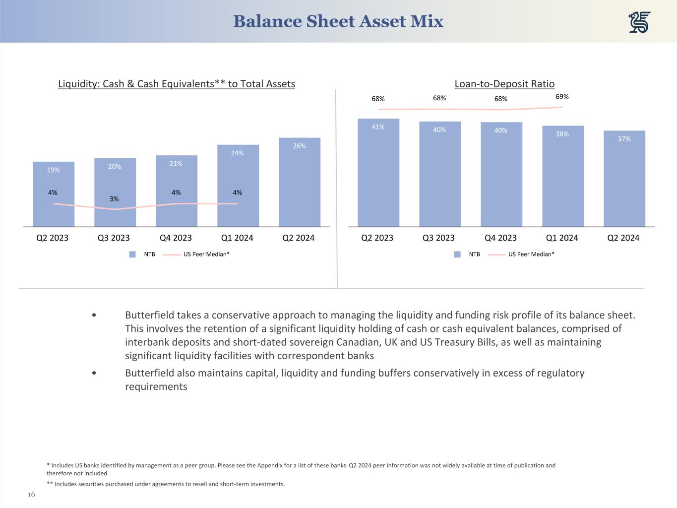15 32% 29% 29% 29% 28% 18% 21% 23% 22% 22% 49% 50% 49% 49% 50% $3.4 $3.6 $3.6 $3.3 $3.2 Bermuda Cayman UK and Channel Islands 2020 2021 2022 2023 Q2 2024 29% 26% 24% 21% 22% 5% 7% 9% 9% 9% 18% 18% 21% 22% 21% 49% 48% 46% 48% 47% $1.6 $1.4 $1.4 $1.3 $1.2 Commercial and Industrial Commercial Overdrafts Government Commercial Real Estate 2020 2021 2022 2023 Q2 2024 Residential Mortgage Loans (US$ Billions) Commercial Loans (US$ Billions) Loans 44% 39% 37% 37% 36% 18% 20% 24% 25% 25% 38% 41% 39% 38% 39% $5.2 $5.2 $5.1 $4.7 $4.6 Bermuda Cayman UK and Channel Islands 2020 2021 2022 2023 Q2 2024 Loan Portfolio Composition by Originating Segment (US$ Billions) 20% 19% 43% 51% 50% 80% 81% 57% 49% 50% $5.2 $5.2 $5.1 $4.7 $4.6 Fixed Floating 2020 2021 2022 2023 Q2 2024 Fixed vs. Floating Rate Loans (US$ Billions)