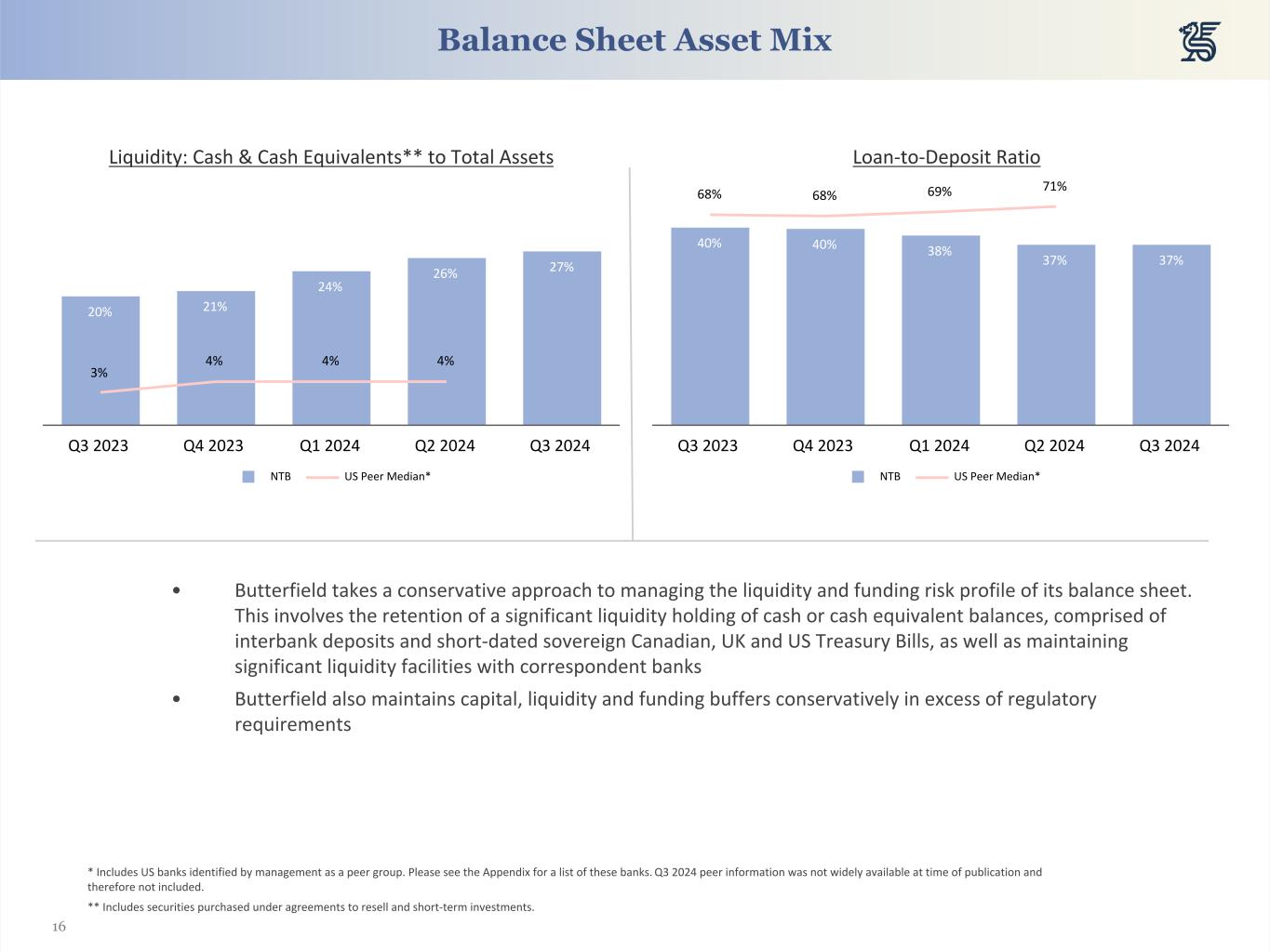 15 32% 29% 29% 29% 27% 18% 21% 23% 22% 21% 49% 50% 49% 49% 52% $3.4 $3.6 $3.6 $3.3 $3.2 Bermuda Cayman UK and Channel Islands 2020 2021 2022 2023 Q3 2024 29% 26% 24% 21% 20% 5% 7% 9% 9% 10% 18% 18% 21% 22% 23% 49% 48% 46% 48% 48% $1.6 $1.4 $1.4 $1.3 $1.2 Commercial and Industrial Commercial Overdrafts Government Commercial Real Estate 2020 2021 2022 2023 Q3 2024 Residential Mortgage Loans (US$ Billions) Commercial Loans (US$ Billions) Loans 44% 39% 37% 37% 34% 18% 20% 24% 25% 24% 38% 41% 39% 38% 42% $5.2 $5.2 $5.1 $4.7 $4.6 Bermuda Cayman UK and Channel Islands 2020 2021 2022 2023 Q3 2024 Loan Portfolio Composition by Originating Segment (US$ Billions) 20% 19% 43% 51% 48% 80% 81% 57% 49% 52% $5.2 $5.2 $5.1 $4.7 $4.6 Fixed Floating 2020 2021 2022 2023 Q3 2024 Fixed vs. Floating Rate Loans (US$ Billions)