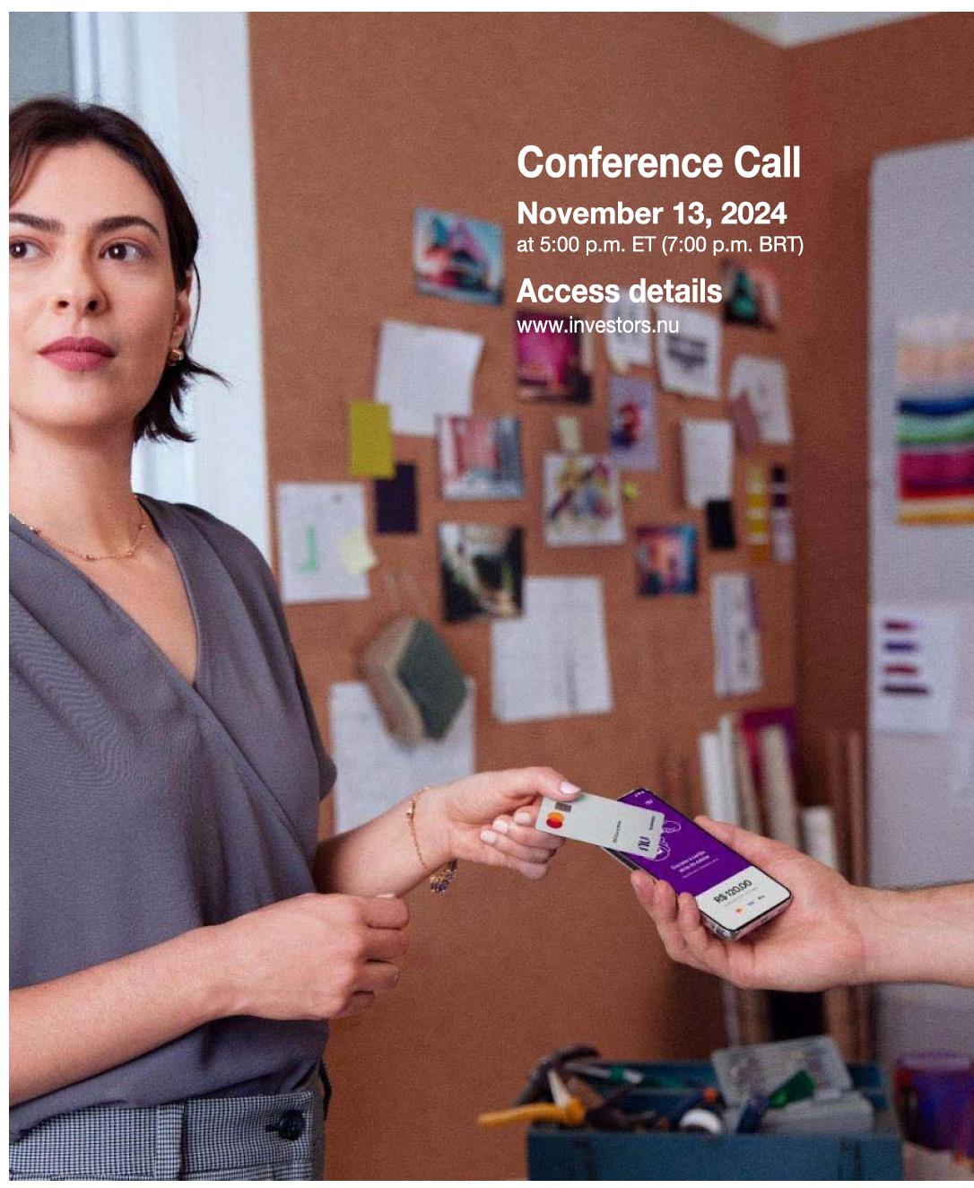 São Paulo – November 13, 2024 – Nu Holdings Ltd. (“Nu”, “Nu Holdings” or “the Company”) (NYSE: NU), one of the world’s largest digital banking platforms, today reported its unaudited results for the third quarter ended on September 30, 2024 (Q3'24). Financial results are expressed in U.S. dollars and are presented in accordance with International Financial Reporting Standards (IFRS), unless otherwise noted.