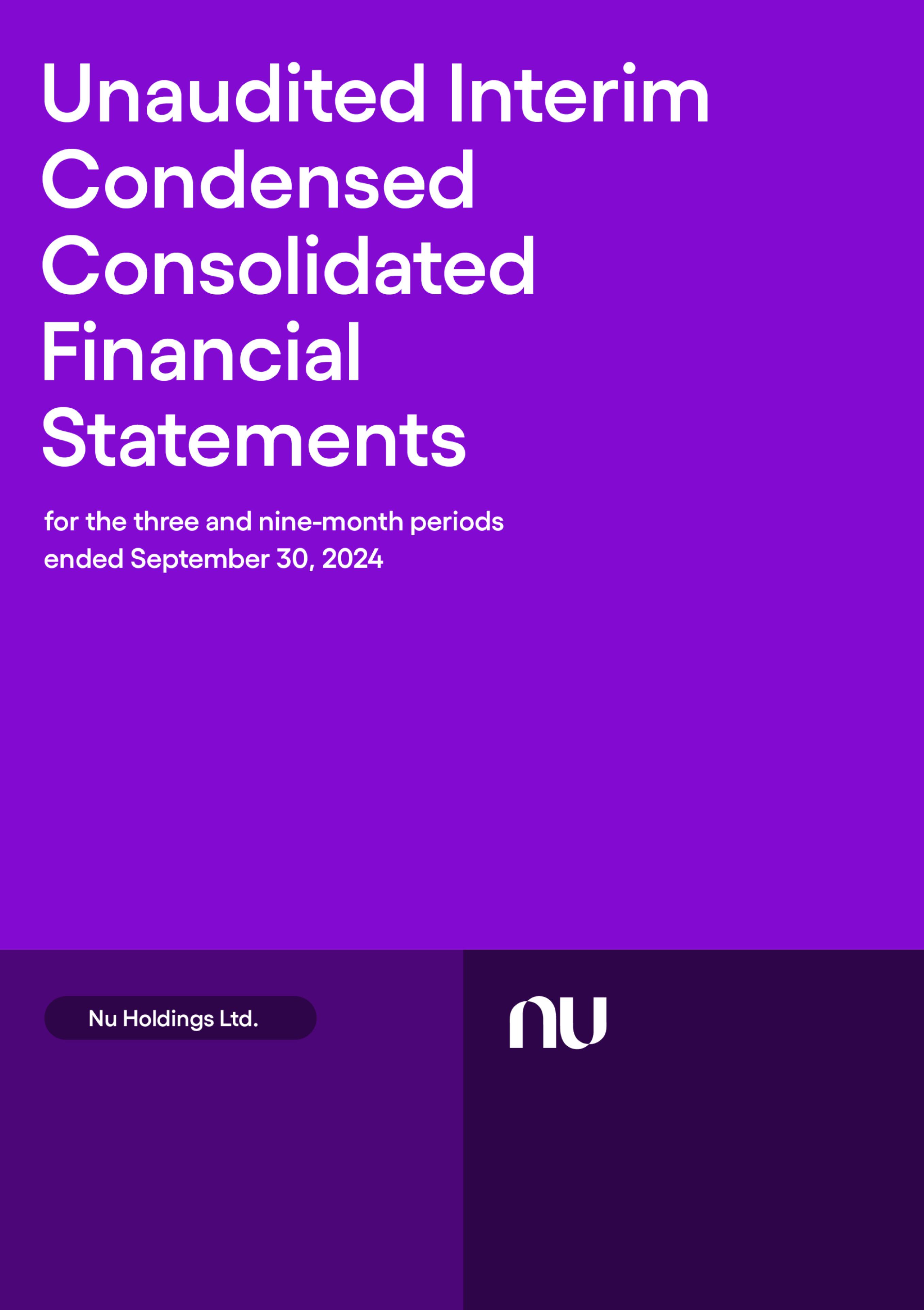 We have reviewed the accompanying interim condensed consolidated statements of financial position of Nu Holdings Ltd. (“Company”) as of September 30, 2024, the condensed consolidated statements of profit or loss and comprehensive income or loss for nine and three-month period ended, changes in equity and cash flows for the nine and three-month period then ended, and notes to the interim condensed consolidated financial statements.