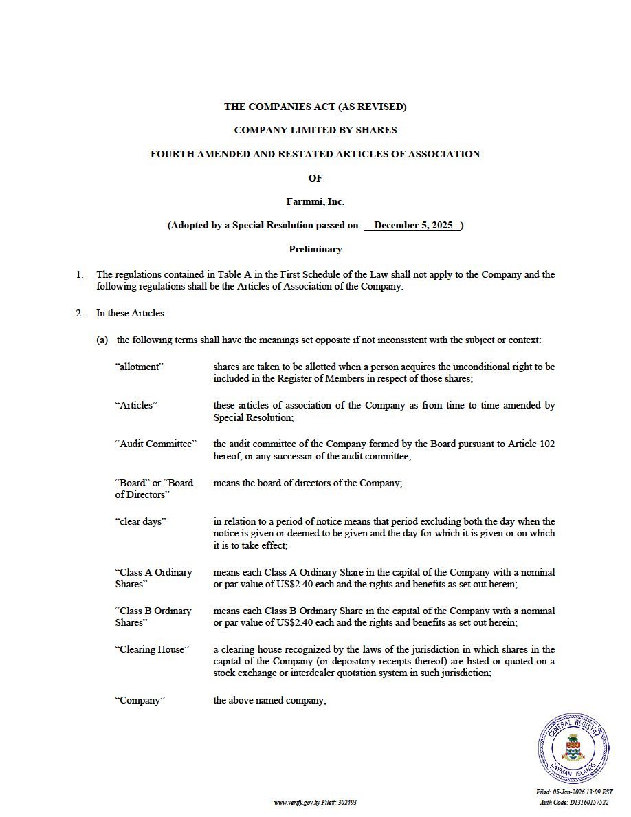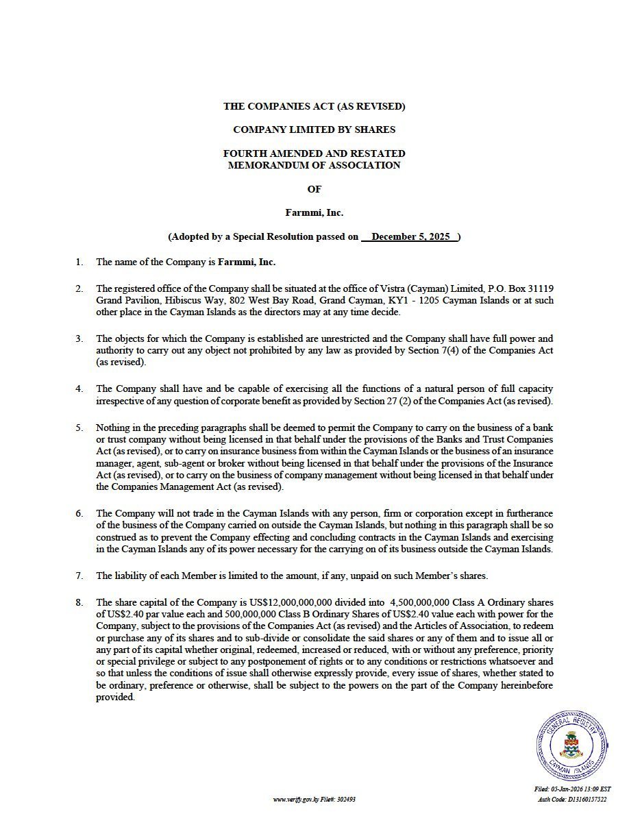 EX-3.1 2 fami_ex31.htm FOURTH AMENDED fami_ex31.htm