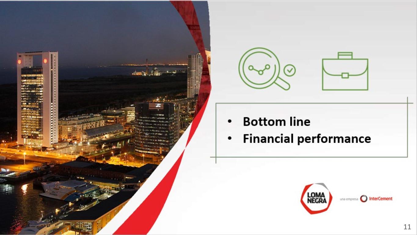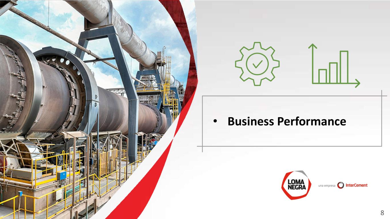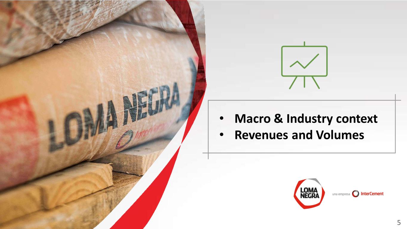 Disclaimer and Forward-Looking Statement This presentation may contain forward-looking statements within the meaning of federal securities law that are subject to risks and uncertainties. These statements are only predictions based upon our current expectations and projections about possible or assumed future results of our business, financial condition, results of operations, liquidity, plans and objectives. In some cases, you can identify forward-looking statements by terminology such as “believe,” “may,” “estimate,” “continue,” “anticipate,” “intend,” “should,” “plan,” “expect,” “predict,” “potential,” “seek,” “forecast,” or the negative of these terms or other similar expressions. The forward-looking statements are based on the information currently available to us. There are important factors that could cause our actual results, level of activity, performance or achievements to differ materially from the results, level of activity, performance or achievements expressed or implied by the forward-looking statements, including, among others things: changes in general economic, political, governmental and business conditions globally and in Argentina, changes in inflation rates, fluctuations in the exchange rate of the peso, the level of construction generally, changes in cement demand and prices, changes in raw material and energy prices, changes in business strategy and various other factors. You should not rely upon forward-looking statements as predictions of future events. Although we believe in good faith that the expectations reflected in the forward-looking statements are reasonable, we cannot guarantee that future results, levels of activity, performance and events and circumstances reflected in the forward-looking statements will be achieved or will occur. Any or all of Loma Negra’s forward-looking statements in this release may turn out to be wrong. You should consider these forward-looking statements in light of other factors discussed under the heading “Risk Factors” in Company’s Annual Report on Form 20-F, as well as periodic filings made on Form 6-K, which are filed with or furnished to the United States Securities and Exchange Commission. Except as required by law, we undertake no obligation to update publicly any forward-looking statements for any reason after the date of this release to conform these statements to actual results or to changes in our expectations. The Company presented some figures converted from Argentine pesos to U.S. dollars for comparison purposes. The exchange rate used to convert Pesos to U.S. dollars was the reference exchange rate (Communication “A” 3500) reported by the Central Bank for U.S. dollars. The information presented in U.S. dollars is for the convenience of the reader only. Certain figures included in this report have been subject to rounding adjustments. Accordingly, figures shown as totals in certain tables may not be arithmetic aggregations of the figures presented in previous quarters. Note: Loma Negra’s financial information has been prepared in accordance with the Argentine Securities Commission (Comisión Nacional de Valores-CNV) and with International Financial Reporting Standards. Following the categorization of Argentina as a country with a three-year cumulative inflation rate greater than 100%, the country is considered highly inflationary in accordance with IFRS. Consequently, starting July 1, 2018, the Company is reporting results applying IFRS rule IAS 29. IAS 29 requires that results of operations in hyperinflationary economies are reported as if these economies were highly inflationary as of January 1, 2018, and thus year-to-date, together with comparable results, should be restated adjusting for the change in general purchasing power of the local currency, using official indices. For comparison purposes and a better understanding of our underlying performance, in addition to presenting ‘As Reported’ results, we are also disclosing selected figures as previously reported excluding rule IAS 29. Additional information in connection with the application of rule IAS 29 can be found in our earnings report. 1