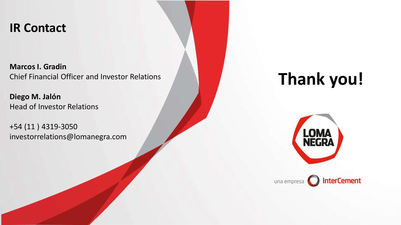 Thank you! IR Contact Marcos I. Gradin Chief Financial Officer and Investor Relations Diego M. Jalón Head of Investor Relations +54 (11 ) 4319-3050 investorrelations@lomanegra.com