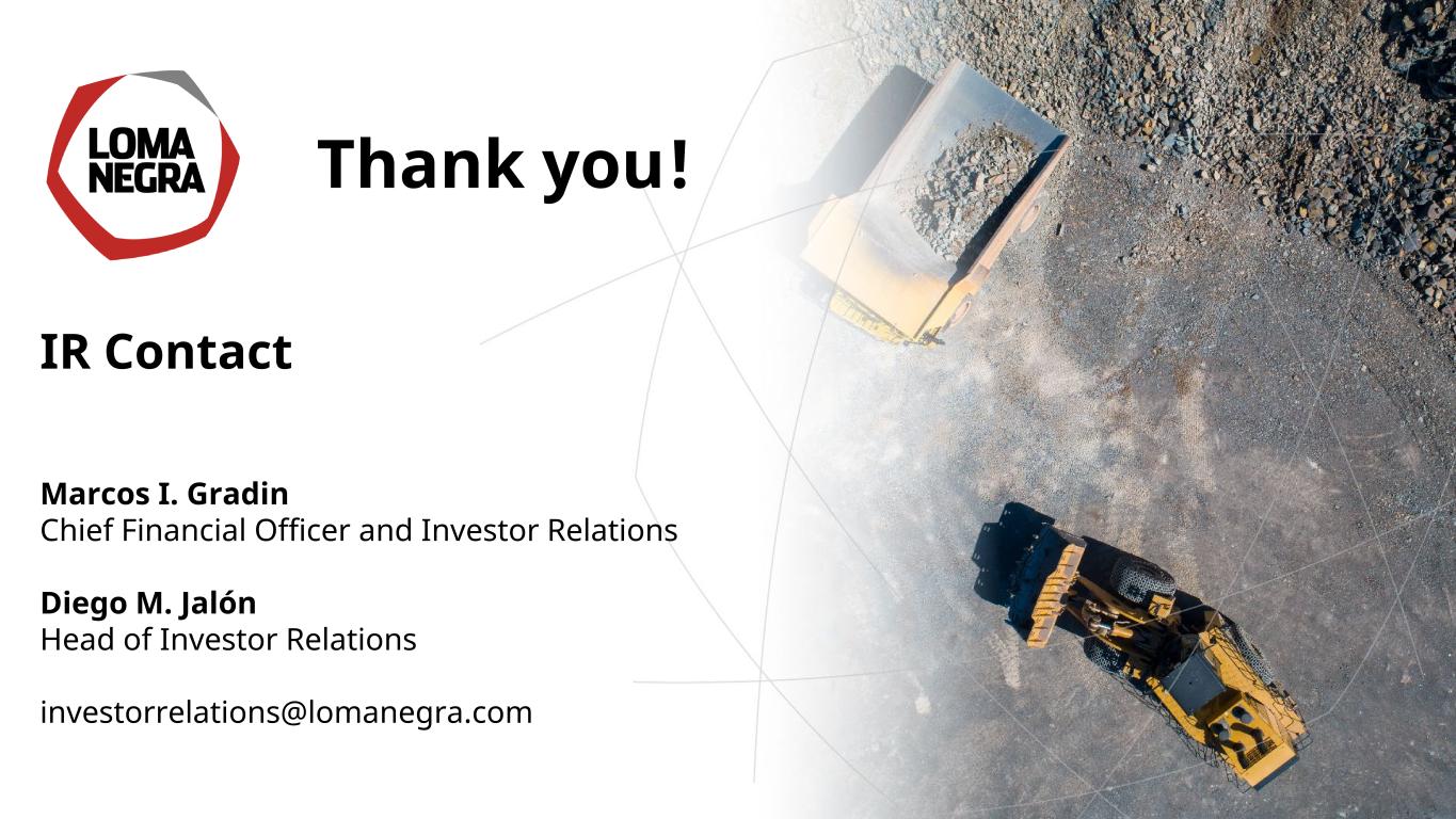 IR Contact Marcos I. Gradin Chief Financial Officer and Investor Relations Diego M. Jalón Head of Investor Relations investorrelations@lomanegra.com Thank you!