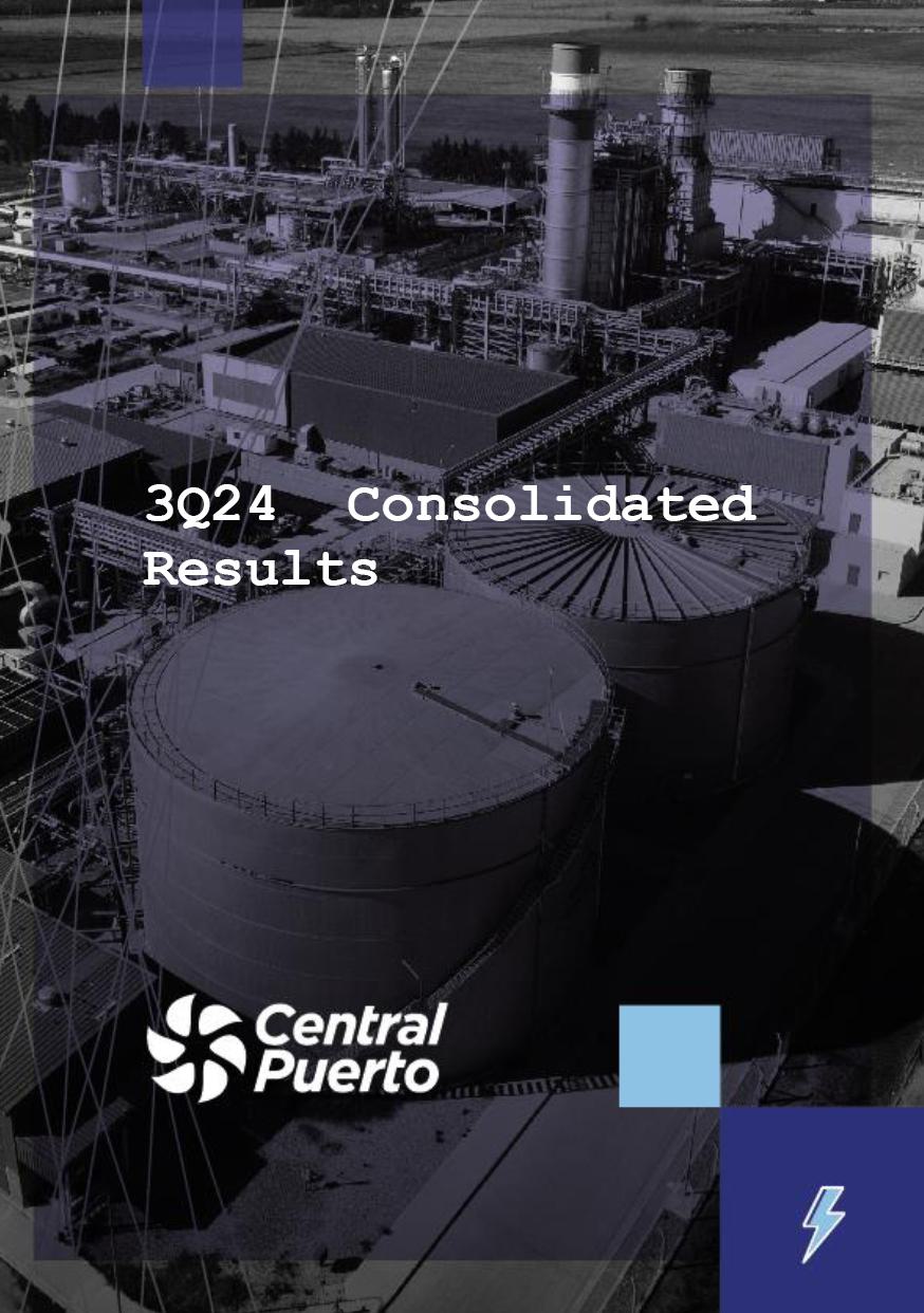 Buenos Aires, November 8th - Central Puerto S.A (“Central Puerto” or the “Company”) (NYSE: CEPU), the largest private sector power generation companies in Argentina, reports its consolidated financial results for the Third Quarter 2024 (“3Q24”), ended on September 30th, 2024.