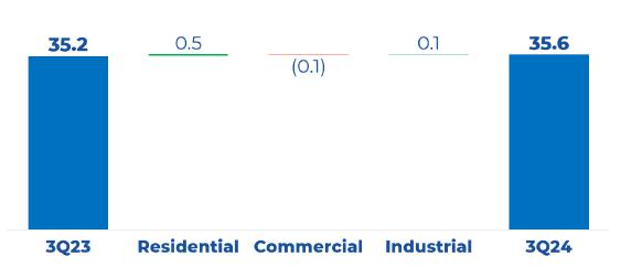 Power generation & demand : During the 3Q24, energy demand increased 1% to 35,635 GWh compared to 35,195 GWh recorded during the 3Q23, which is basically explained by a rise in residential consumption due to weather conditions. Colder temperatures during July and August of this year vis-à-vis same months of 2023 prompted higher retail consumption, which shrank in September as a result of milder temperatures compared to equal month of 2023. End to end, residential consumption rose 3%. With regards to major demand, a slightly higher consumption was recorded, specially for wholesale major demand, which was boosted by stronger economic activity. The trend is similar to residential pattern: positive YoY growth rates during July and August then decreasing in September.