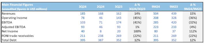 Finally, Net Income in 3Q24 amounted to US$40 million, compared to US$20 million of 3Q23.
