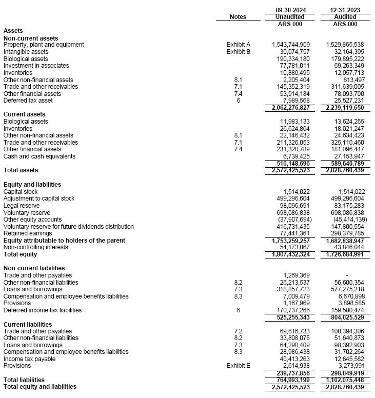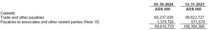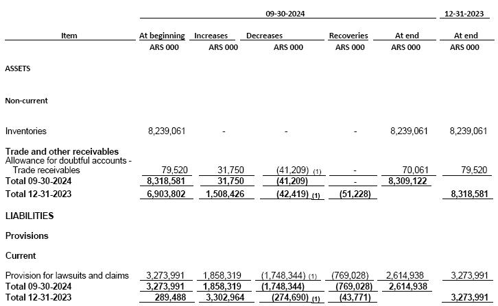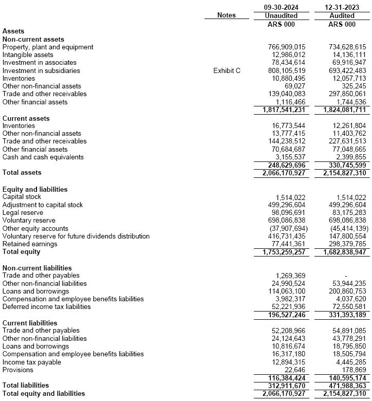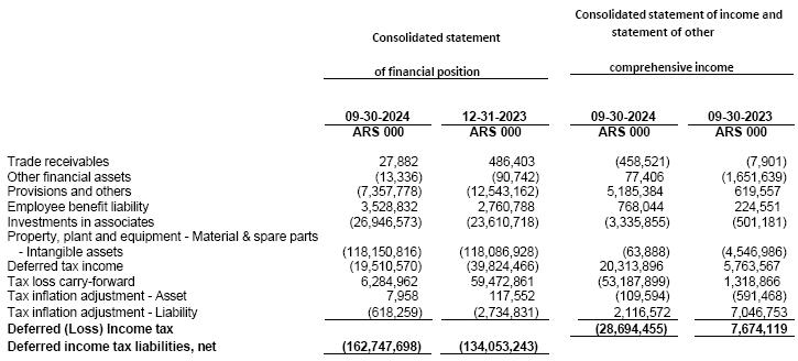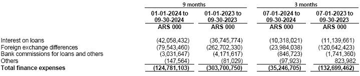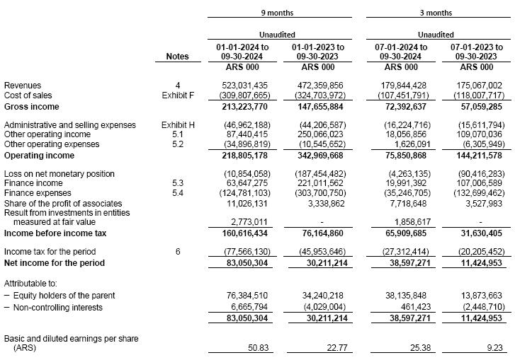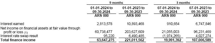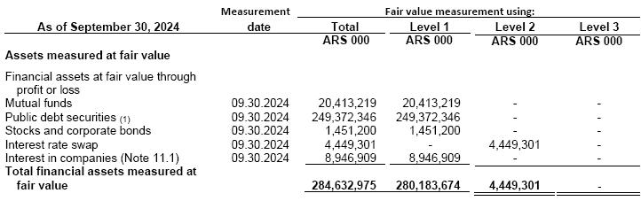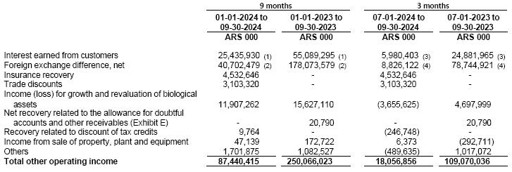(2)At the exchange rate according to Communication “A” 3500 (wholesale) prevailing as of September 30, 2024 as per the Argentine Central Bank.