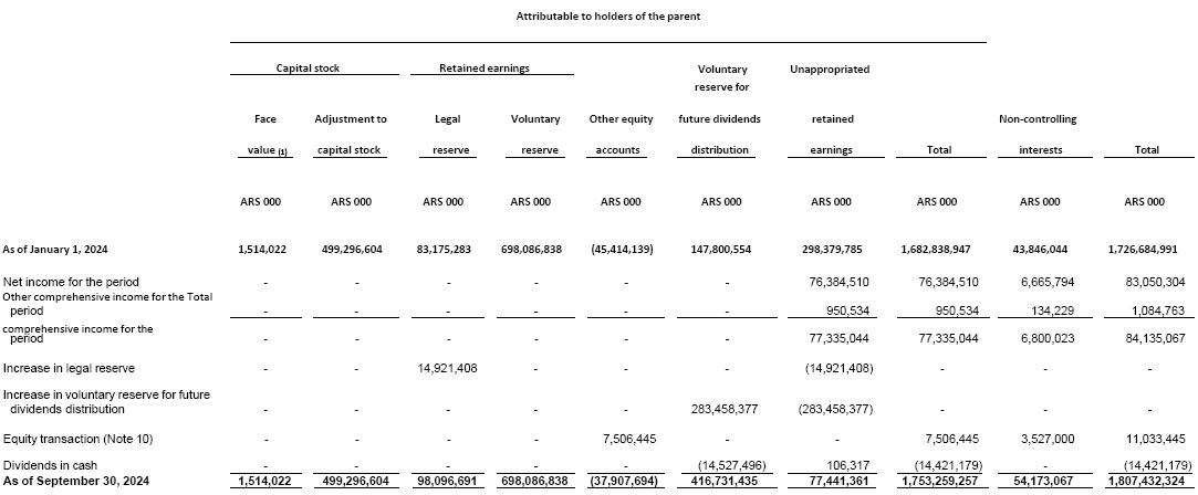 (2)Corresponds to the incorporation of the non-controlling interest resulting from the business combination with Central Costanera S.A. as described in Note 2.3.20 to the consolidated financial statements for the year ended December 31, 2023, already issued.
