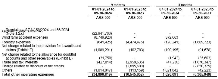 After the closing of the period, on November 1, 2024, Resolution No. 20/2024 issued by the Secretariat of Coordination of Energy and Mining was published in the Official Gazette, through which the power and energy remuneration values of the generation not committed under contracts were updated. Such resolution replaces Exhibits I to V of Resolution No. 285/2024 and establishes a 6% increase as from November 1, 2024.