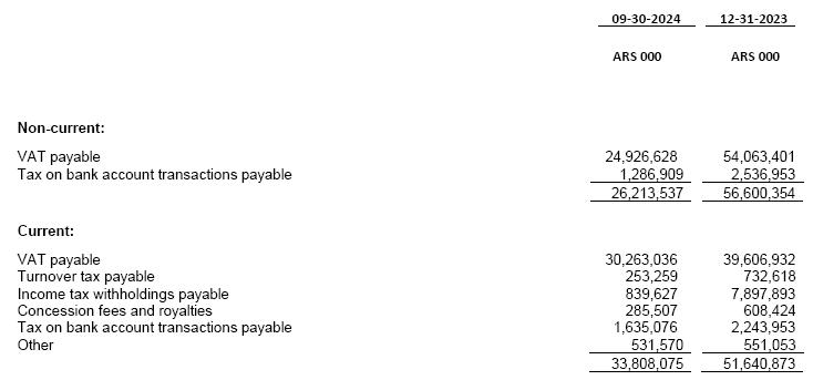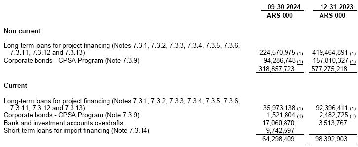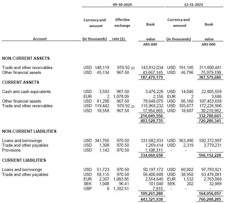 (1)At the exchange rate prevailing as of September 30, 2024 as per the Argentine National Bank.