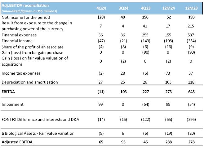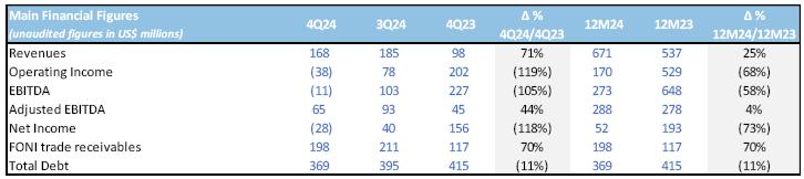 Finally, Net Income in 4Q24 amounted to a loss of US$28 million, compared to a gain of US$156 million of 4Q23.