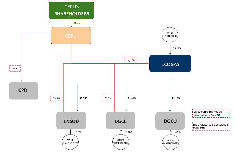 As stated in the respective meetings of the Board of Directors of the Companies, dated March 31, 2025, whereby, among other items, the split-off merger previous commitment was approved (“Previous Commitment”), in which the terms and conditions of the Corporate Reorganization were agreed, it results beneficial for the Parties to conduct the Corporate Reorganization, which qualifies under the terms of tax neutrality, as CEPU intends to split its shareholding in the gas business, therefore allowing its current shareholdings in ECOGAS, ENSUD and DGCE to be held directly by CEPU shareholders (through ECOGAS).