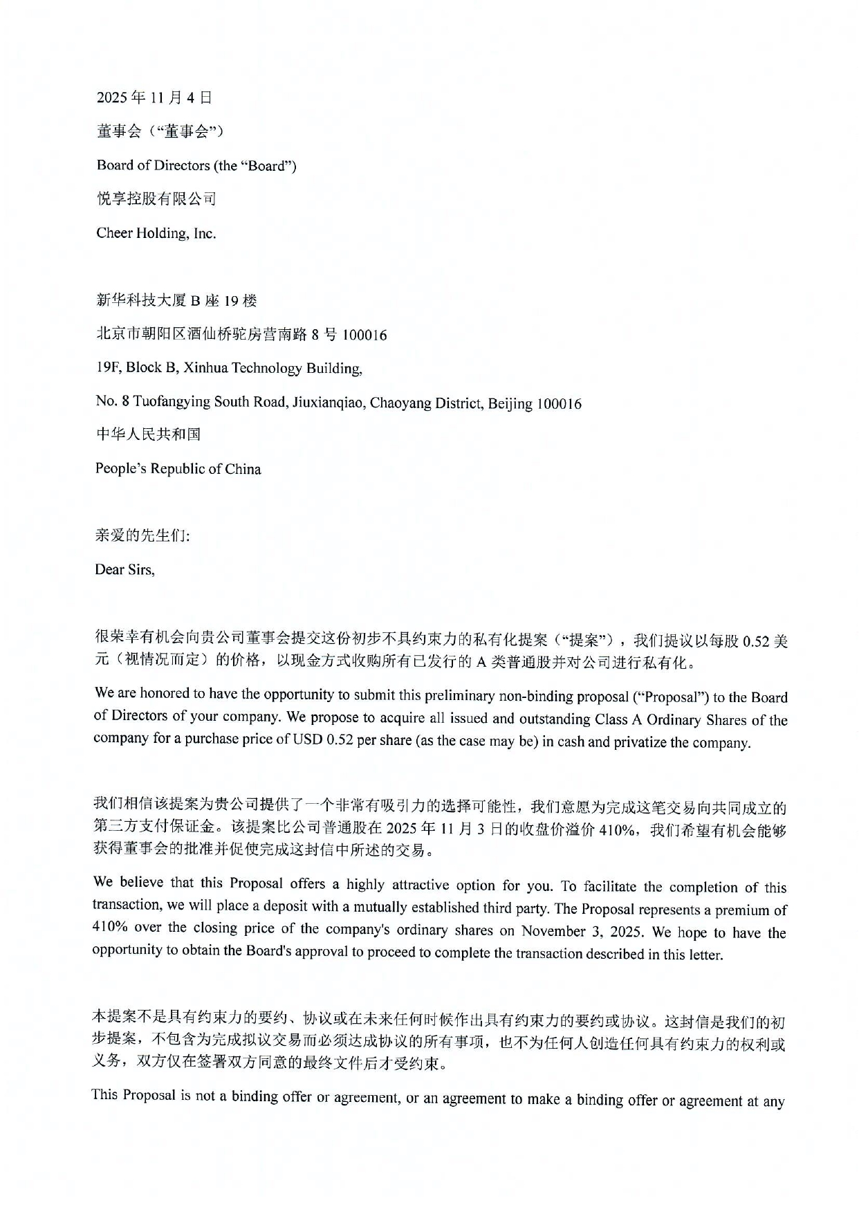 EX-99.3 4 ea026413901ex99-3_cheer.htm NON-BINDING PROPOSAL FROM EXCEL ALLY VENTURES LIMITED, DATED NOVEMBER 4, 2025