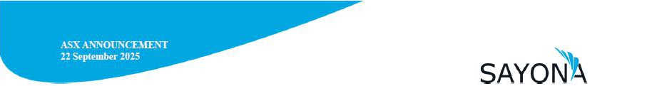 ·Capitalised terms in this announcement that are not otherwise defined have the meaning given to them in the Notice of Meeting and Explanatory Memorandum released by Sayona on the ASX on June 20, 2025.