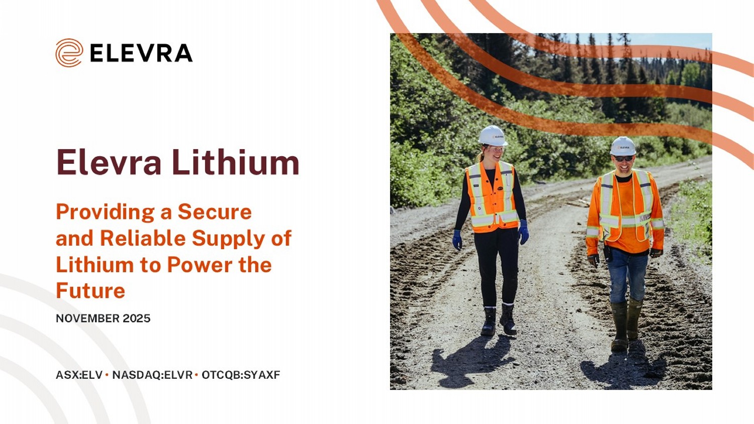 ASX: ELV • NASDAQ:ELVR • OTCQB:SYAXF Elevra Lithium Providing a Secure and Reliable Supply of Lithium to Power the Future NOVEMBER 2025