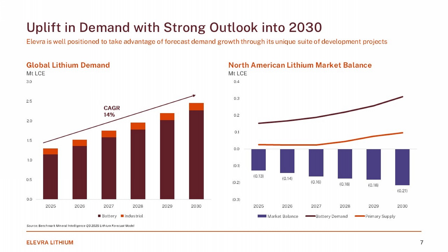0.0 0.5 1.0 1.5 2.0 2.5 3.0 2025 2026 2027 2028 2029 2030 Battery Industrial Uplift in Demand with Strong Outlook into 2030 Elevra is well positioned to take advantage of forecast demand growth through its unique suite of development projects Global Lithium Demand Mt LCE North American Lithium Market Balance M t LCE CAGR 14% ELEVRA LITHIUM 7 (0.13) (0.14) (0.16) (0.18) (0.18) (0.21) (0.3) (0.2) (0.1) 0.0 0.1 0.2 0.3 0.4 2025 2026 2027 2028 2029 2030 Market Balance Battery Demand Primary Supply Source: Benchmark Mineral Intelligence Q3 2025 Lithium Forecast Model