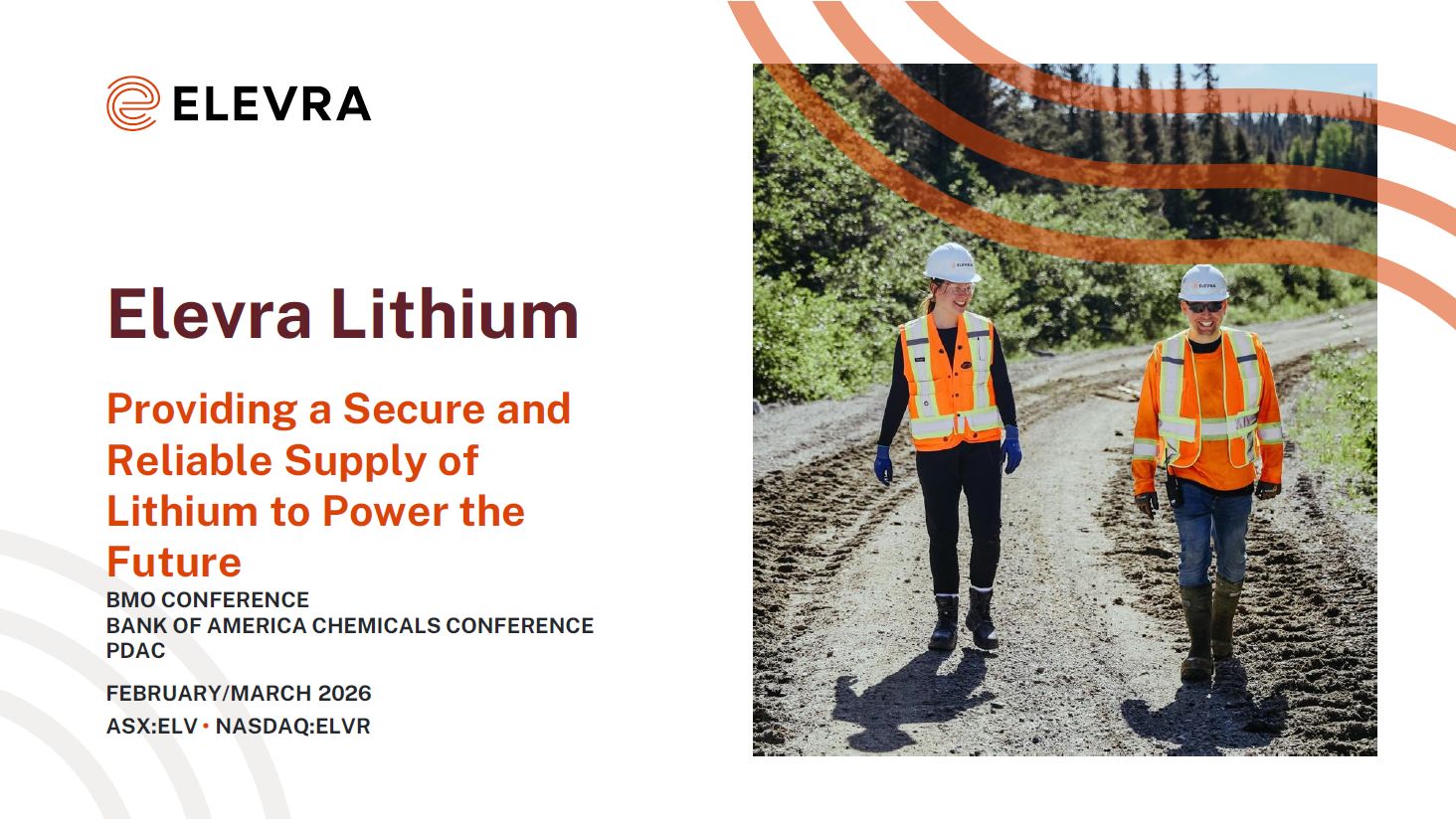 Providing a Secure and Reliable Supply of Lithium to Power the Future  BMO CONFERENCE  BANK OF AMERICA CHEMICALS CONFERENCE  PDAC  FEBRUARY/MARCH 2026  ASX:ELV • NASDAQ:ELVR  Elevra Lithium