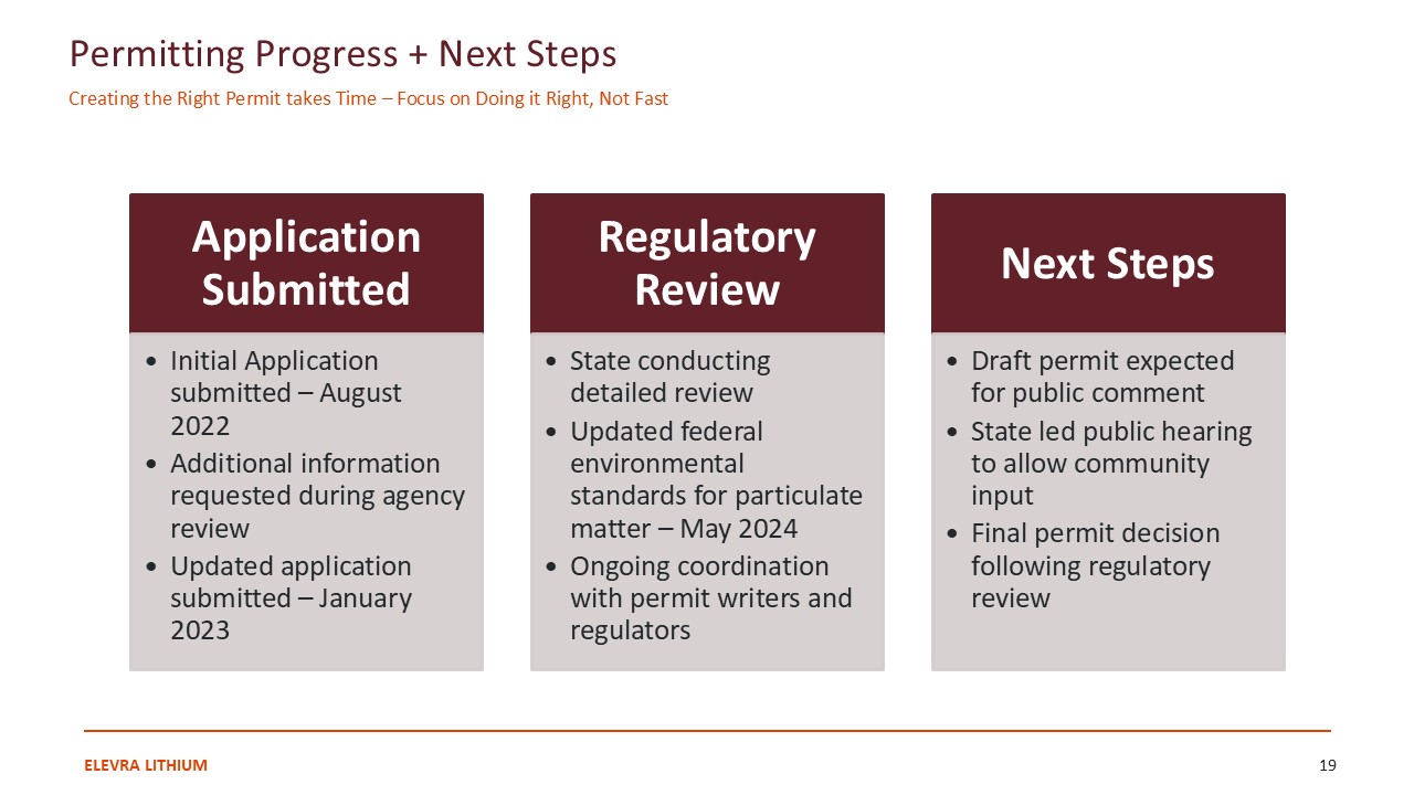 Permitting Progress + Next Steps   Creating the Right Permit takes Time – Focus on Doing it Right, Not Fast  ELEVRA LITHIUM  19