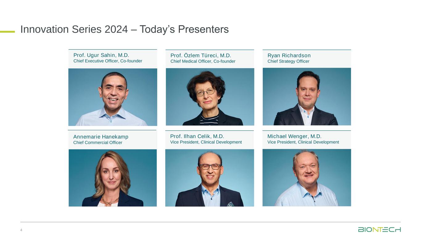 Innovation Series 2024 – Today’s Presenters 4 Prof. Ugur Sahin, M.D. Chief Executive Officer, Co-founder Prof. Özlem Türeci, M.D. Chief Medical Officer, Co-founder Ryan Richardson Chief Strategy Officer Annemarie Hanekamp Chief Commercial Officer Prof. Ilhan Celik, M.D. Vice President, Clinical Development Michael Wenger, M.D. Vice President, Clinical Development