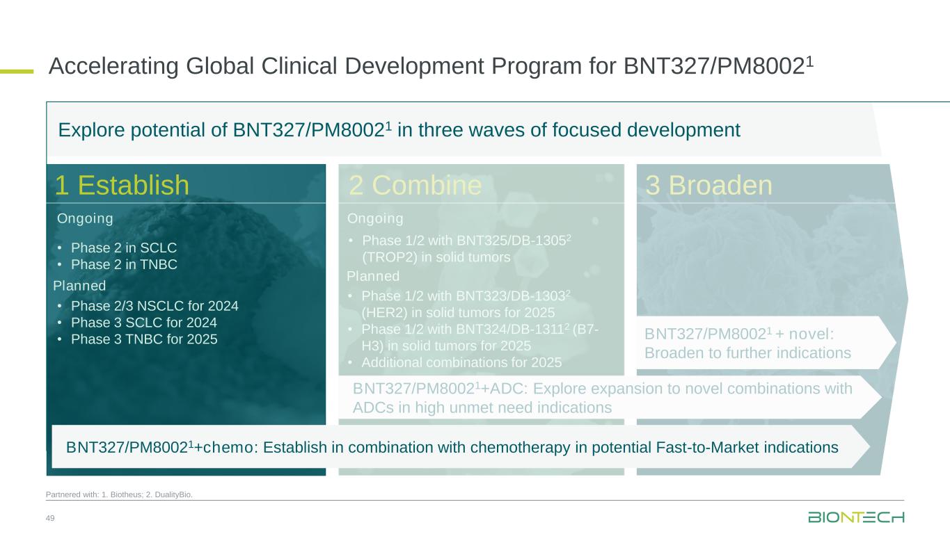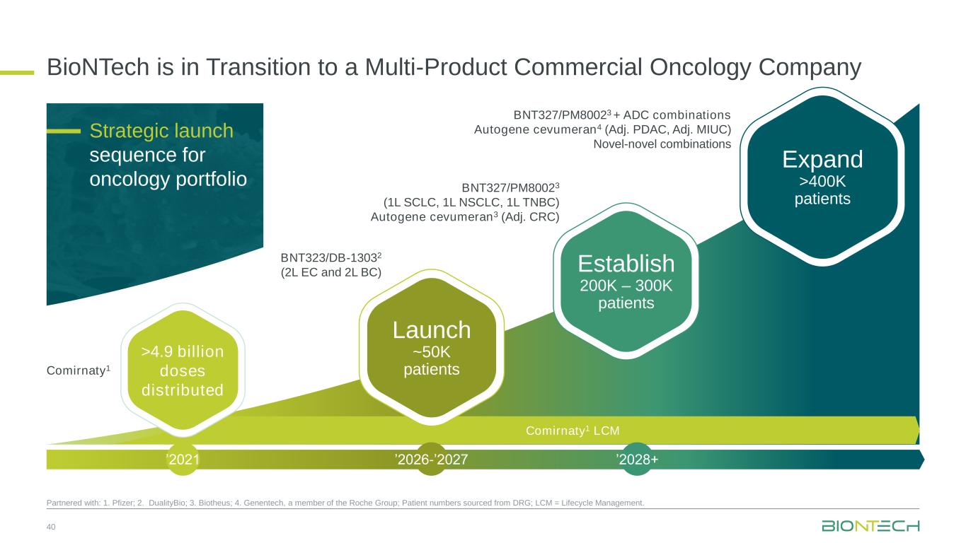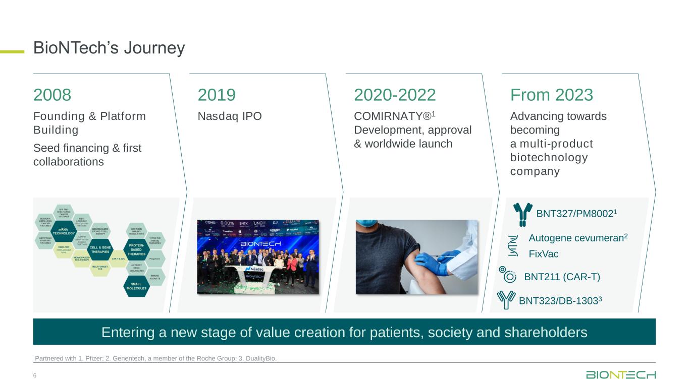This Slide Presentation Includes Forward-Looking Statements This presentation contains forward-looking statements within the meaning of the Private Securities Litigation Reform Act of 1995, as amended, including, but not limited to, statements concerning: BioNTech’s expected revenues and net profit/(loss), particularly for those figures that are derived from preliminary estimates provided by BioNTech’s partners; the rate and degree of market acceptance of BioNTech’s COVID-19 vaccine and, if approved, BioNTech’s investigational medicines; expectations regarding anticipated changes in COVID-19 vaccine demand, including changes to the ordering environment and expected regulatory recommendations to adapt vaccines to address new variants or sublineages; the initiation, timing, progress, results, and cost of BioNTech’s research and development programs, including BioNTech’s current and future preclinical studies and clinical trials, including statements regarding the expected timing of initiation, enrollment, and completion of studies or trials and related preparatory work and the availability of results, and the timing and outcome of applications for regulatory approvals and marketing authorizations; BioNTech’s expectations regarding potential future commercialization in oncology, including goals regarding timing and indications; the targeted timing and number of additional potentially registrational trials, and the registrational potential of any trial BioNTech may initiate; discussions with regulatory agencies; BioNTech’s expectations with respect to intellectual property; BioNTech’s acquisition of Biotheus, which is subject to customary closing conditions, including regulatory approvals; the impact of BioNTech’s acquisition of Biotheus upon closing; collaboration and licensing agreements; the development, nature and feasibility of sustainable vaccine production and supply solutions; the deployment of AI across BioNTech’s preclinical and clinical operations; BioNTech’s estimates of revenues, research and development expenses, selling, general and administrative expenses, and capital expenditures for operating activities; and BioNTech’s expectations of net profit / (loss). In some cases, forward-looking statements can be identified by terminology such as “will,” “may,” “should,” “expects,” “intends,” “plans,” “aims,” “anticipates,” “believes,” “estimates,” “predicts,” “potential,” “continue,” or the negative of these terms or other comparable terminology, although not all forward-looking statements contain these words. The forward-looking statements in this presentation are based on BioNTech’s current expectations and beliefs of future events, and are neither promises nor guarantees. You should not place undue reliance on these forward-looking statements because they involve known and unknown risks, uncertainties, and other factors, many of which are beyond BioNTech’s control and which could cause actual results to differ materially and adversely from those expressed or implied by these forward-looking statements. These risks and uncertainties include, but are not limited to: the uncertainties inherent in research and development, including the ability to meet anticipated clinical endpoints, commencement and/or completion dates for clinical trials, projected data release timelines, regulatory submission dates, regulatory approval dates and/or launch dates, as well as risks associated with preclinical and clinical data, including the data discussed in this release, and including the possibility of unfavorable new preclinical, clinical or safety data and further analyses of existing preclinical, clinical or safety data; the nature of the clinical data, which is subject to ongoing peer review, regulatory review and market interpretation; BioNTech’s pricing and coverage negotiations regarding its COVID-19 vaccine with governmental authorities, private health insurers and other third-party payors; the future commercial demand and medical need for initial or booster doses of a COVID-19 vaccine; competition from other COVID-19 vaccines or related to BioNTech’s other product candidates, including those with different mechanisms of action and different manufacturing and distribution constraints, on the basis of, among other things, efficacy, cost, convenience of storage and distribution, breadth of approved use, side- effect profile and durability of immune response; the timing of and BioNTech’s ability to obtain and maintain regulatory approval for its product candidates; the ability of BioNTech’s COVID-19 vaccines to prevent COVID-19 caused by emerging virus variants; BioNTech’s and its counterparties’ ability to manage and source necessary energy resources; BioNTech’s ability to identify research opportunities and discover and develop investigational medicines; the ability and willingness of BioNTech’s third-party collaborators to continue research and development activities relating to BioNTech's development candidates and investigational medicines; the impact of COVID-19 on BioNTech’s development programs, supply chain, collaborators and financial performance; unforeseen safety issues and potential claims that are alleged to arise from the use of products and product candidates developed or manufactured by BioNTech; BioNTech’s and its collaborators’ ability to commercialize and market BioNTech’s COVID-19 vaccine and, if approved, its product candidates; BioNTech’s ability to manage its development and related expenses; regulatory developments in the United States and other countries; BioNTech’s ability to effectively scale its production capabilities and manufacture its products and product candidates; risks relating to the global financial system and markets; and other factors not known to BioNTech at this time. You should review the risks and uncertainties described under the heading 