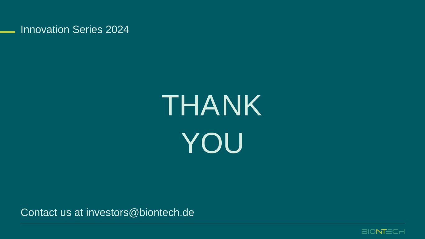 Innovation Series 2024 THANK YOU Contact us at investors@biontech.de