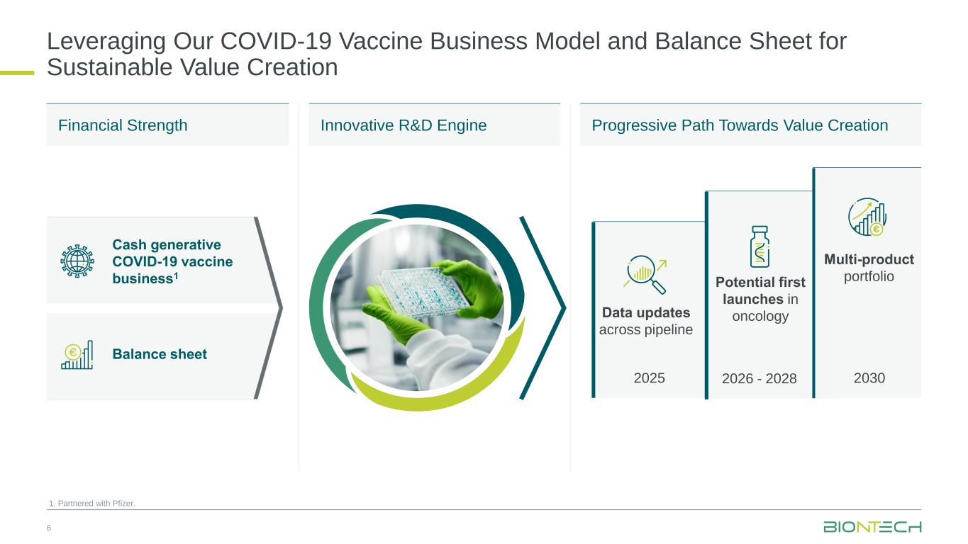 Leveraging Our COVID-19 Vaccine Business Model and Balance Sheet for Sustainable Value Creation 6 1. Partnered with Pfizer. Multi-product portfolioPotential first launches in oncologyData updates across pipeline Cash generative COVID-19 vaccine business1 Balance sheet Financial Strength Progressive Path Towards Value CreationInnovative R&D Engine 2025 2026 - 2028 2030