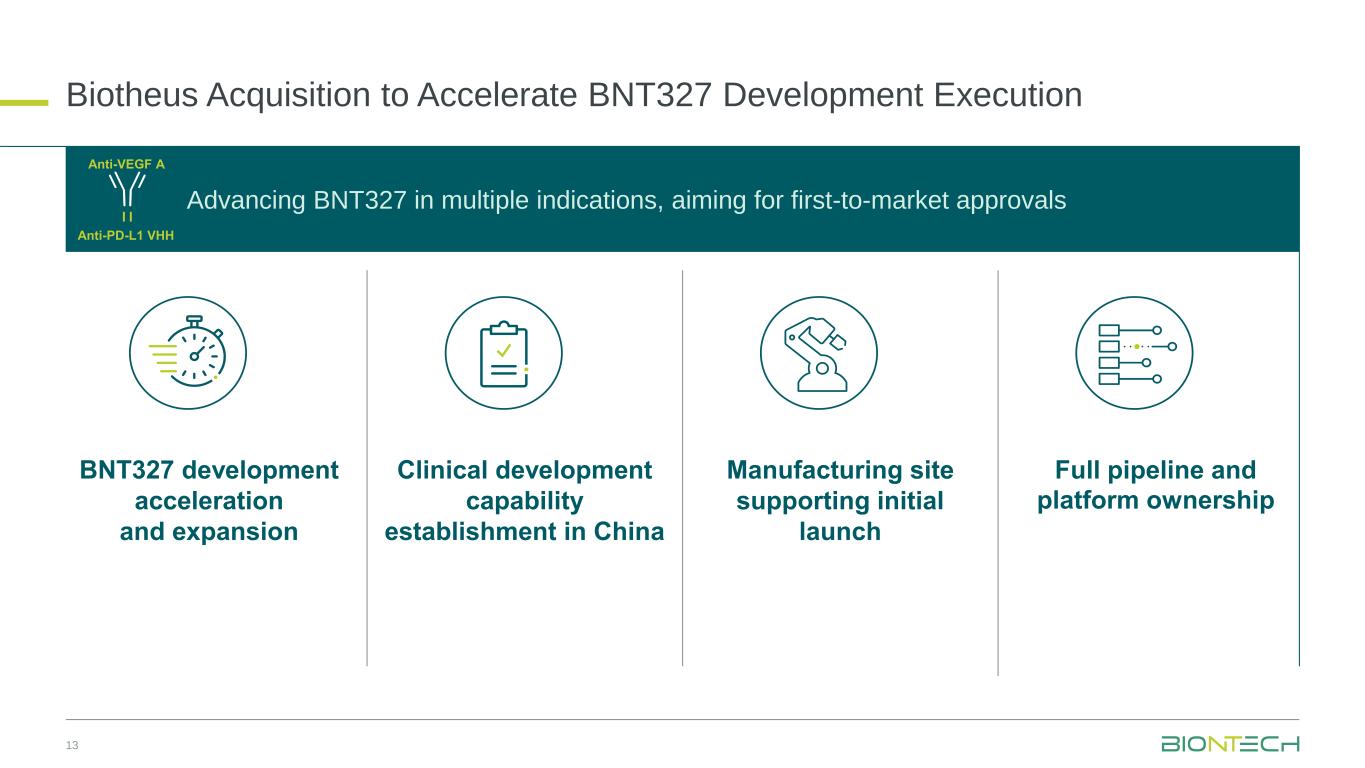 Advancing BNT327 in multiple indications, aiming for first-to-market approvals Biotheus Acquisition to Accelerate BNT327 Development Execution 13 Anti-VEGF A Anti-PD-L1 VHH BNT327 development acceleration and expansion Clinical development capability establishment in China Full pipeline and platform ownership Manufacturing site supporting initial launch