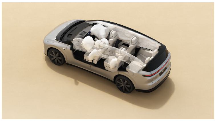 For passive safety, Li i8 adopts a multi-path force transmission design in the front compartment, featuring three longitudinal force transmission paths to enhance energy dispersion during frontal collisions. The front compartment integrates 11 circular energy-absorbing structures, which effectively absorb and dissipate collision energy, ensuring overall vehicle safety and significantly enhancing the structural integrity of the occupant cabin. Li i8 also features comprehensive airbag protection with extended side curtain airbags and door handles designed to remain unlockable even in power failures. It is also engineered to meet stringent eco-health standards. Additionally, its battery has undergone rigorous safety testing under extreme conditions such as submersion and freezing, complying with rigorous safety protocols. On active safety, all Li i8 trims come standard with LiDAR sensors and are equipped with enhanced automatic emergency steering (AES) to effectively mitigate collision risks from other vehicles.