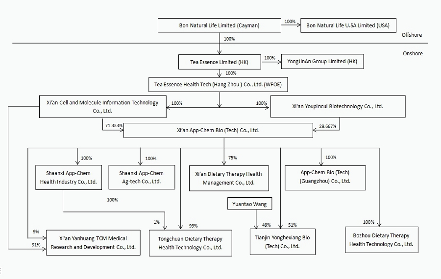 On January 2, 2025, BON Natural Life Limited (the “Company”) announced that it conducted a reorganization (the “Reorganization”). The Reorganization consists of (i) share transfer transactions between Tea Essence Health Tech (Hangzhou) Co., Ltd. (“Tea Essence (Hangzhou)”) and Tea Essence Limited (HK) (“Tea Essence”), in which Tea Essence transferred 100% ownership of its two wholly owned subsidiaries, Xi’an Cell and Molecule Information Technology Co., Ltd. (“Xi’an Cell and Molecule”) and Xi’an Youpincui Biotechnology Co., Ltd. (“Youpincui”), to Tea Essence (Hangzhou) (the “Tea Essence (Hangzhou) transfer”); (ii) the disposition of Gansu Baimeikang Bioengineering Co., Ltd., (“Baimeikang”), which was sold to Xinjiang Baixiangquan Aromatic (Tech) Co., Ltd. (“Baixiangquan”) (the “Gansu Disposition”); and (iii) the acquisition of YongJinAn Group Limited (HK), a Hong Kong company (“YongJinAn”), which was acquired from Xianlin Pan and Shaojun Zhang (collectively, the “Sellers”) and became wholly owned by Tea Essence (the “YongJinAn Acquisition”)