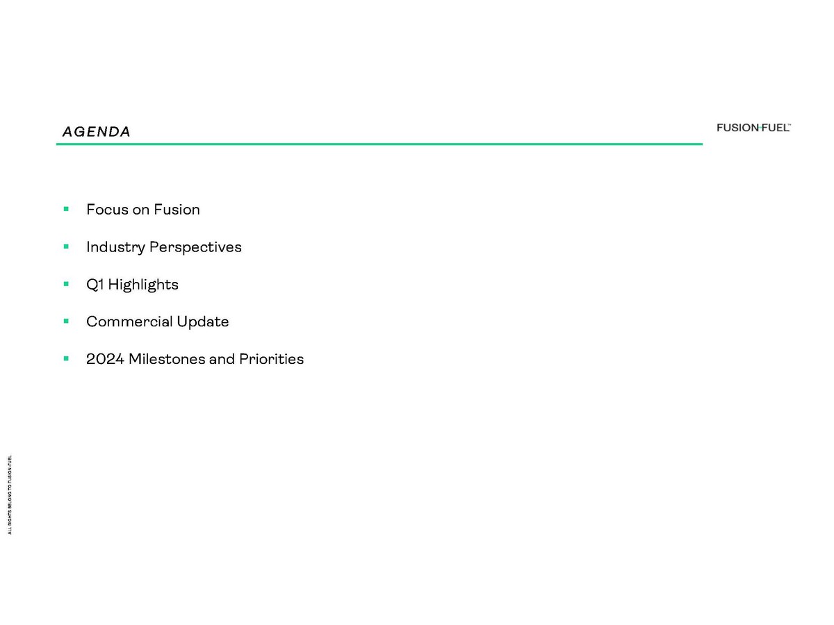ALL RIGHTS BELONG TO FUSION - FUEL ▪ Focus on Fusion ▪ Industry Perspectives ▪ Q1 Highlights ▪ Commercial Update ▪ 2024 Milestones and Priorities AGENDA