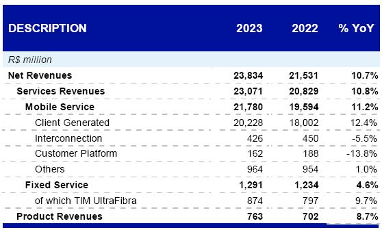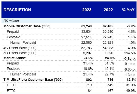 We have audited the individual and consolidated financial statements of Tim S/A (the “Company”), identified as Individual and Consolidated, respectively, which comprise the balance sheets as at December 31, 2023, and the statements of income, of comprehensive income, of changes in shareholder’s equity and cash flows for the year then ended, and notes to the financial statements, including material accounting policy information.