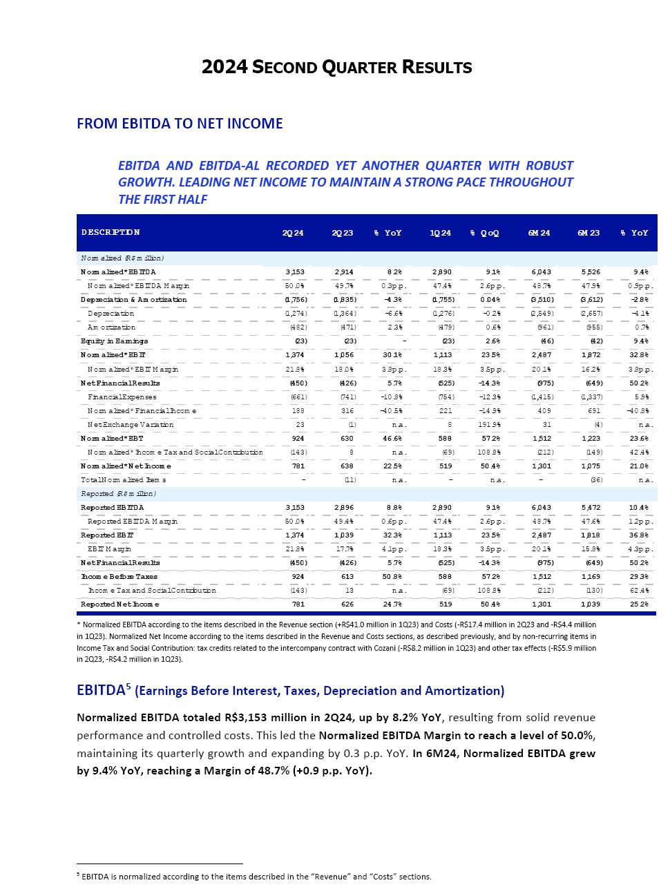 The sensitivity analyses for derivative financial instruments in force on June 30, 2024 were carried out considering, basically, the assumptions related to changes in market interest rates and the change in the US dollar used in swap contracts. The use of these assumptions in the analysis is due exclusively to the characteristics of derivative financial instruments, which have exposure only to changes in interest and exchange rates.