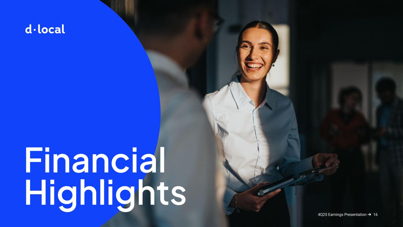 Investor Relations Contact investor@dlocal.com Media Contact media@dlocal.com This presentation does not contain sufficient information to constitute an interim financial report as defined in International Accounting Standards 34, “Interim Financial Reporting” nor a financial statement as defined by International Accounting Standards 1 “Presentation of Financial Statements”. The fourth quarter financial information in this press release has not been audited nor has it been subject to any limited review procedures, whereas the annual results for the year ended December 31, 2025 are audited.