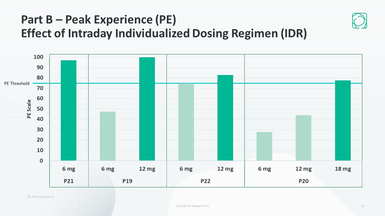 Part B – Peak Experience (PE)Effect of Intraday Individualized Dosing Regimen (IDR)  13  PE Threshold  PE, Peak Experience