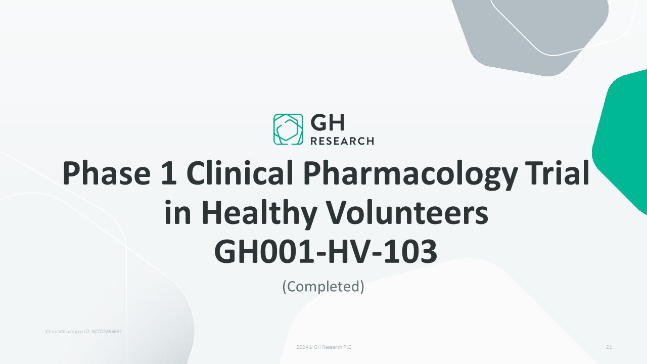 (Completed)  Phase 1 Clinical Pharmacology Trial in Healthy Volunteers GH001-HV-103  21  Clinicaltrials.gov ID: NCT05163691
