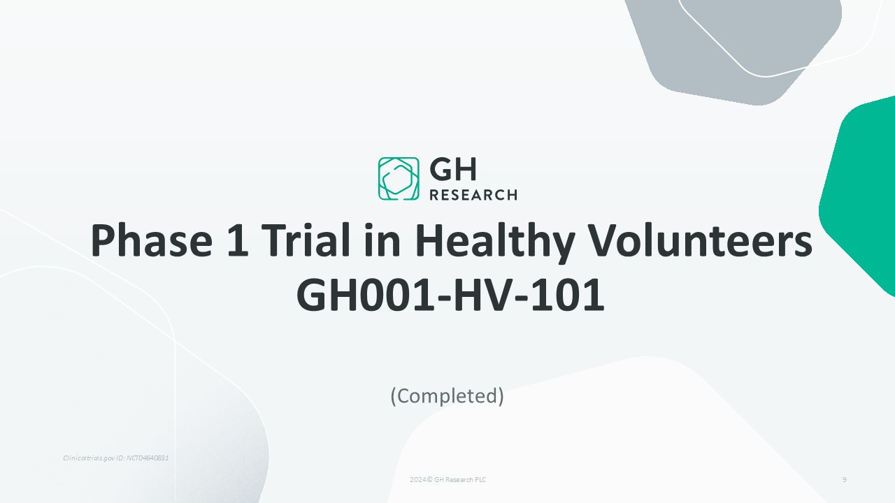 Phase 1 Trial in Healthy Volunteers GH001-HV-101  9  (Completed)  Clinicaltrials.gov ID: NCT04640831