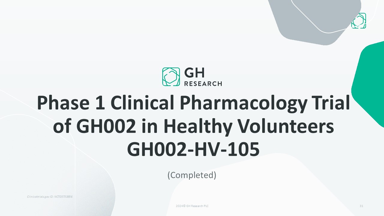 (Completed)  Phase 1 Clinical Pharmacology Trial of GH002 in Healthy Volunteers GH002-HV-105  31  Clinicaltrials.gov ID: NCT05753956