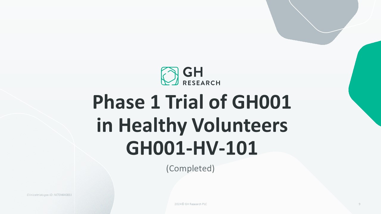 Phase 1 Trial of GH001 in Healthy Volunteers GH001-HV-101  9  (Completed)  Clinicaltrials.gov ID: NCT04640831