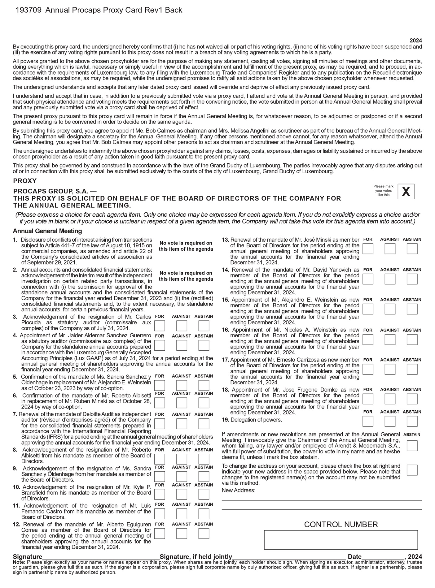 EX-99.2 3 ea022307601ex99-2_procaps.htm FORM OF PROXY CARD FOR THE GENERAL MEETING OF SHAREHOLDERS OF PROCAPS GROUP, S.A