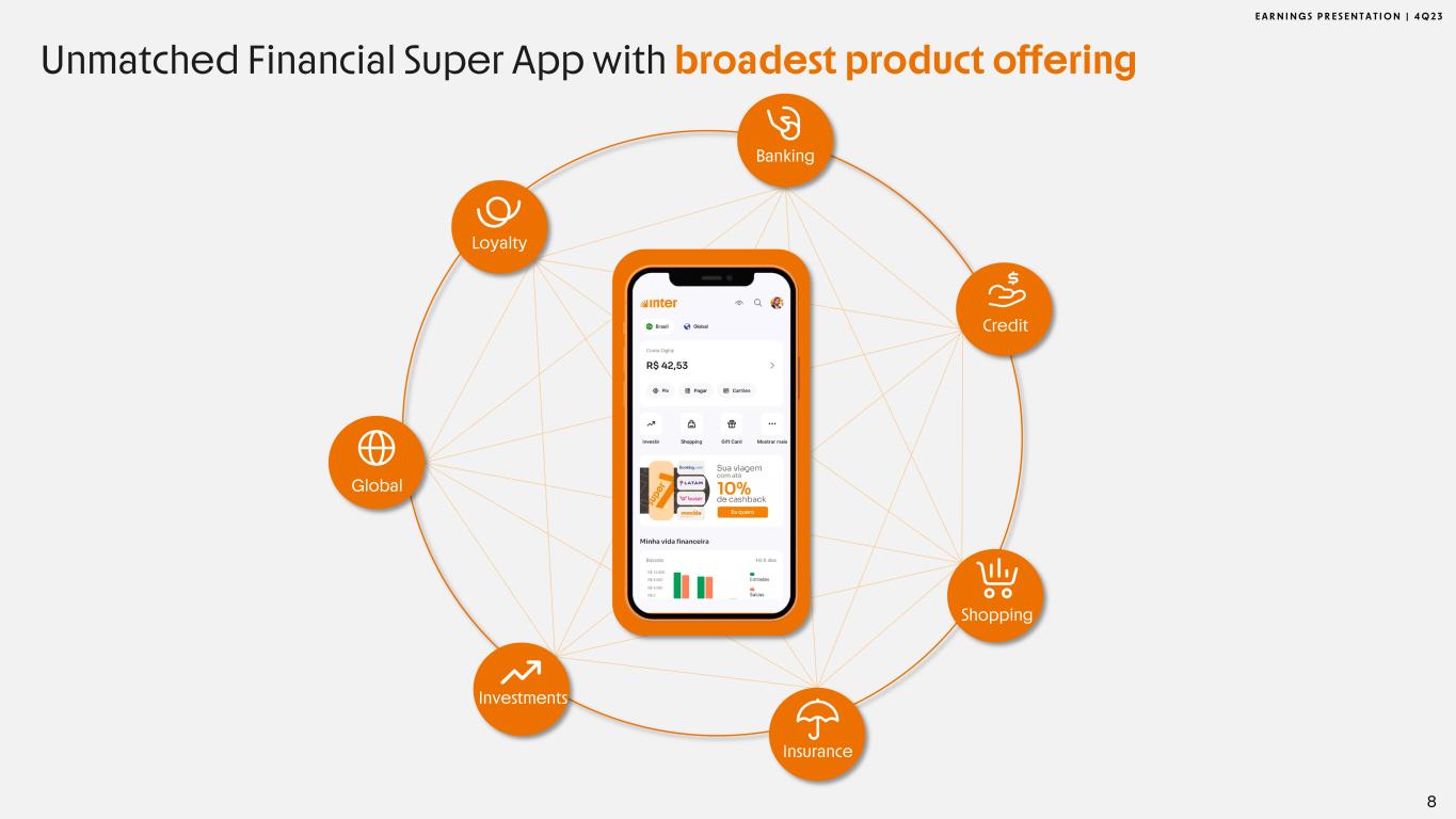 E A R N I N G S P R E S E N T A T I O N | 4 Q 2 3 Banking Global Loyalty Credit Insurance Shopping Investments 8 Unmatched Financial Super App with broadest product offering