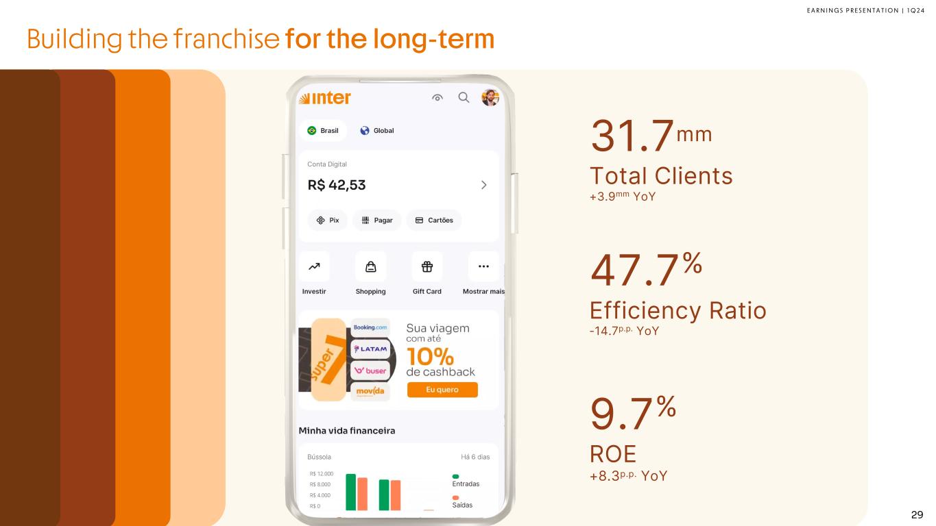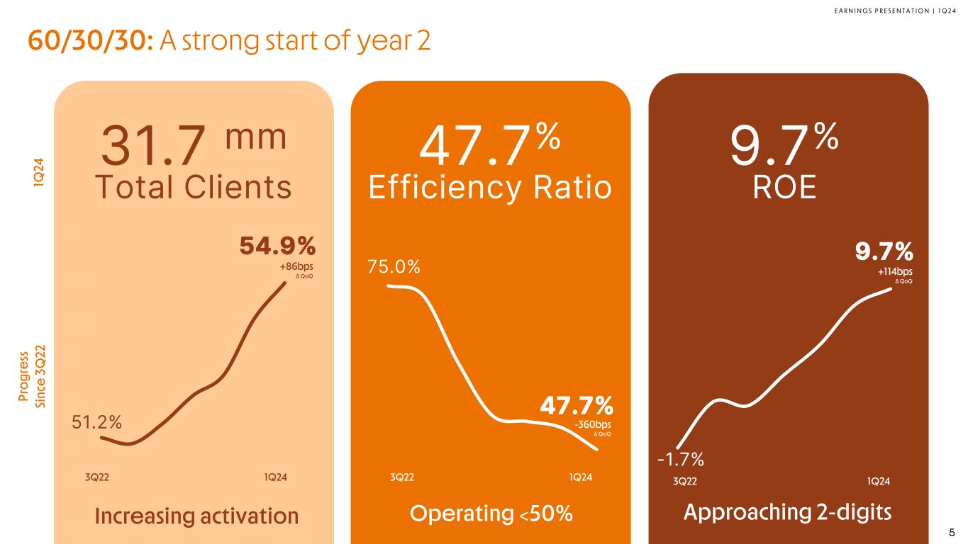 E A R N I N G S P R E S E N T A T I O N | 1 Q 2 4 31.7mm Total Clients +3.9mm YoY 47.7% Efficiency Ratio -14.7p.p. YoY 9.7% ROE +8.3p.p. YoY Building the franchise for the long-term 29 A Key completive financial success