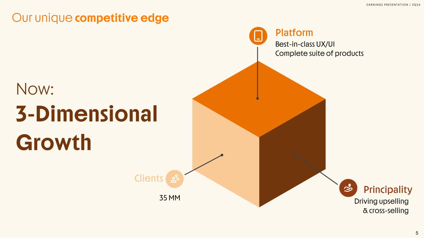 E A R N I N G S P R E S E N T A T I O N | 3 Q 2 4 5 Our unique competitive edge 35 MM Driving upselling & cross-selling Principality Clients Best-in-class UX/UI Complete suite of products Platform Now: 3-Dimensional Growth