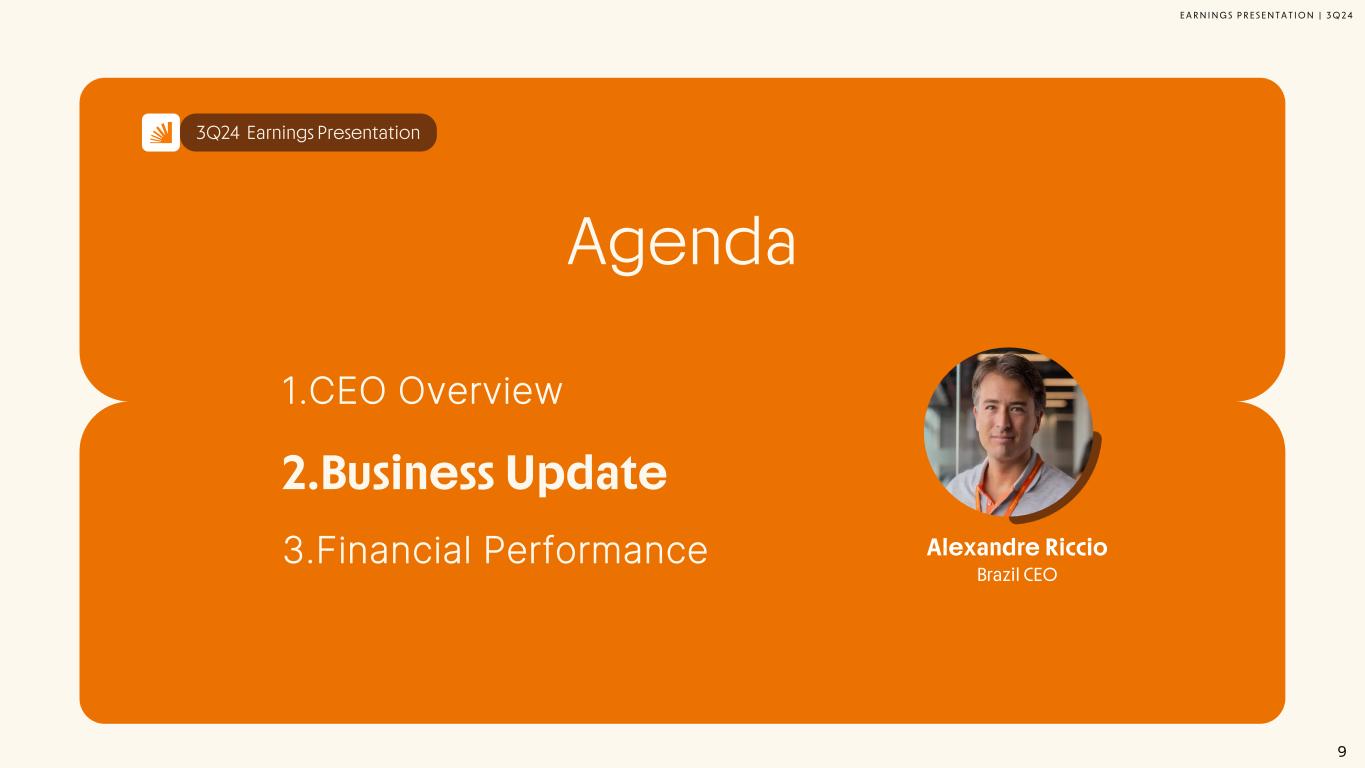E A R N I N G S P R E S E N T A T I O N | 3 Q 2 4 9 Agenda 1.CEO Overview 2.Business Update 3.Financial Performance 3Q24 Earnings Presentation Alexandre Riccio Brazil CEO