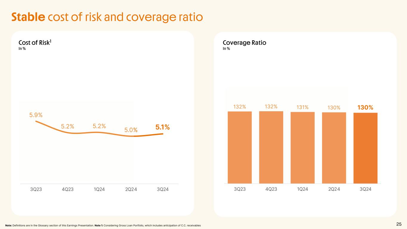Coverage Ratio In % Cost of Risk1 In % 25 5.9% 5.2% 5.2% 5.0% 5.1% 2 .0 % 3 .0 % 4 .0 % 5 .0 % 6 .0 % 7 .0 % 8 .0 % 3Q23 4Q23 1Q24 2Q24 3Q24 132% 132% 131% 130% 130% 0 .0 % 2 0. 0% 4 0. 0% 6 0. 0% 8 0. 0% 10 0 .0 % 12 0 .0 % 14 0 .0 % 16 0 .0 % 18 0 .0 % 2 0 .0 % 3Q23 4Q23 1Q24 2Q24 3Q24 Stable cost of risk and coverage ratio Note: Definitions are in the Glossary section of this Earnings Presentation. Note 1: Considering Gross Loan Portfolio, which includes anticipation of C.C. receivables