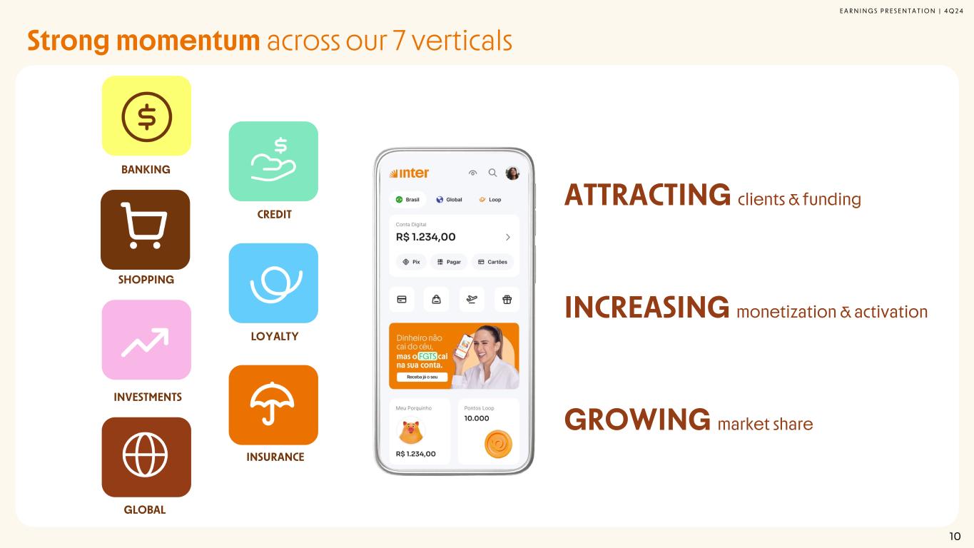 E A R N I N G S P R E S E N T A T I O N | 4 Q 2 4 GROWING market share INCREASING monetization & activation ATTRACTING clients & funding 10 Strong momentum across our 7 verticals CREDIT BANKING INSURANCE INVESTMENTS GLOBAL LOYALTY SHOPPING