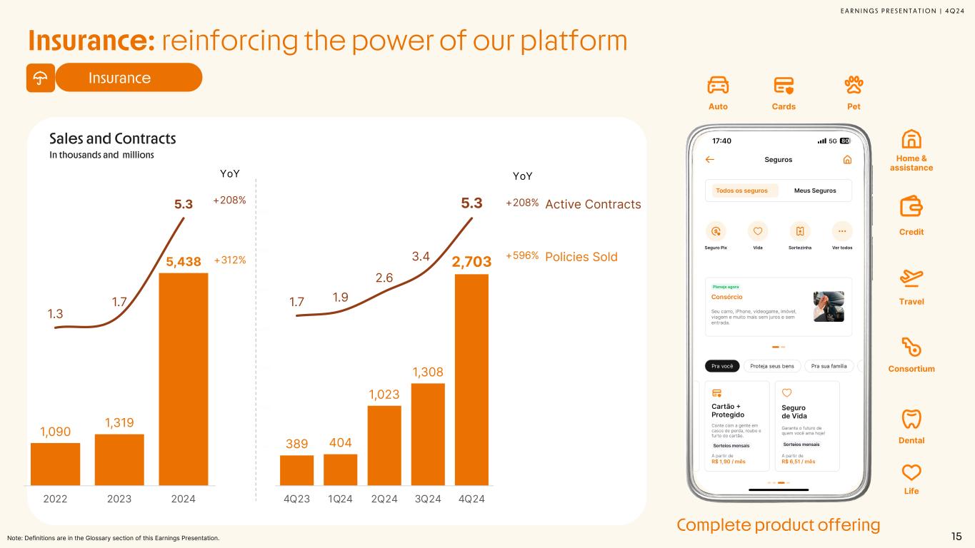 E A R N I N G S P R E S E N T A T I O N | 4 Q 2 4 15 Insurance Policies Sold Active Contracts Sales and Contracts In thousands and millions Insurance: reinforcing the power of our platform Note: Definitions are in the Glossary section of this Earnings Presentation. 389 404 1,023 1,308 2,703 1.7 1.9 2.6 3.4 5.3 - 4.5 - 3.5 - 2.5 - 1.5 - 0. 5 0 .5 1. 5 2 .5 3 .5 4 .5 5 .5 - 500 1,000 1,500 2,000 2,5 00 3,000 3,5 00 4Q23 1Q24 2Q24 3Q24 4Q24 Home & assistance Travel Consortium Pet Dental Auto Cards Life Credit Complete product offering YoY +208% +312% YoY +208% +596% 1,090 1,319 5,438 1.3 1.7 5.3 - 4.5 - 3.5 - 2.5 - 1.5 - 0. 5 0 .5 1. 5 2 .5 3 .5 4 .5 5 .5 - 1,000 2,000 3,000 4, 000 5,000 6,000 7,000 2022 2023 2024