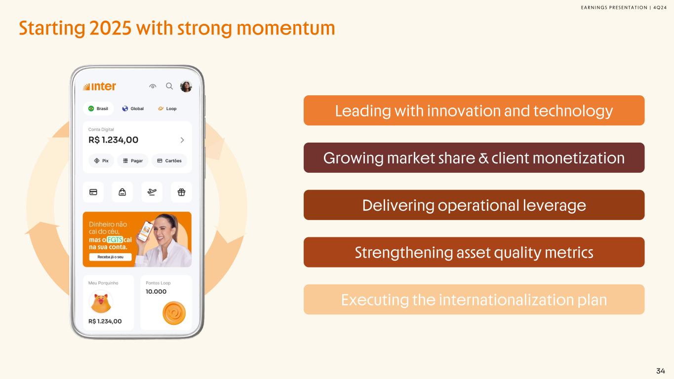 E A R N I N G S P R E S E N T A T I O N | 4 Q 2 4 Starting 2025 with strong momentum 34 Leading with innovation and technology Growing market share & client monetization Strengthening asset quality metrics Executing the internationalization plan Delivering operational leverage