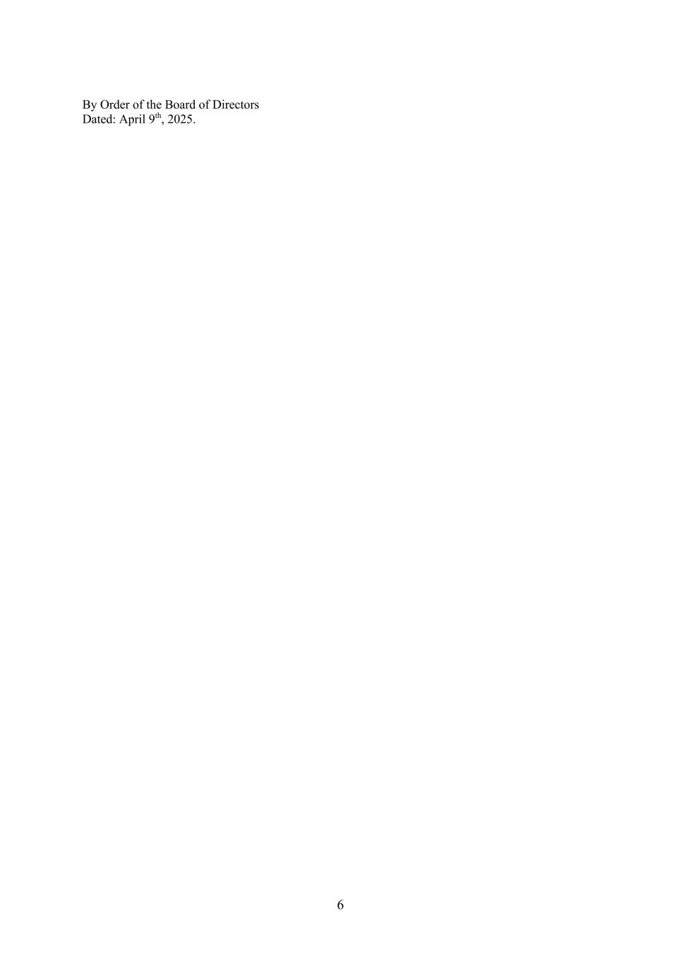 6 By Order of the Board of Directors Dated: April 9th, 2025.