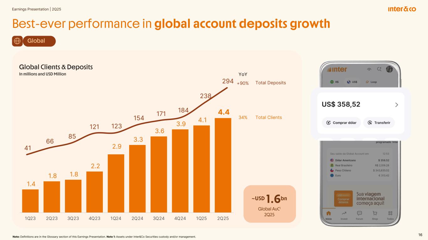 15 Earnings Presentation | 2Q25 Superior growth in fee businesses across different verticals Investments Insurance Shopping AuC Active Clients 105 154 5.7 7.9 50.0 70.0 90.0 110.0 130.0 150.0 170.0 2Q24 2Q25 YoY +38% +47% R$6.2bn Piggy Bank1 AuC +303% YoY AuC & Active Clients In R$ billions & In millions R$14.0bn AuM +127% YoY Active Contracts YoY + 6.7 p.p. +272% Active Contracts In millions & In % 2.6 9.6 0 .0 % 2 .0 % 4 .0 % 6 .0 % 8 .0 % 10 .0 % 12 .0 % 14 .0 % 16 .0 % 18 .0 % - 2.0 4. 0 6.0 8. 0 10.0 12.0 2Q24 2Q25 GMV & Net Take Rate In millions & In % GMV YoY + 1.7 p.p. +9% Success of new products Integrated products across verticals 9.3% GMV Converted to BNPL2 +1.1 p.p. QoQ 3.6mm Active Clients 2Q25 +13% YoY 1,136 1,237 2Q24 2Q25 Loyalty 8.3 13.6 0 .0 2 .0 4 .0 6 .0 8 .0 10 .0 12 .0 14 .0 16 .0 2Q24 2Q25 YoY +64% Clients In millions 2.6x More products used by Loop client’s vs other clients1 3.0x More cards TPV used by Loop client’s vs other clients1 Note: Definitions are in the Glossary section of this Earnings Presentation. Note 1: “Meu Porquinho” in Portuguese. Note 2: Considering 2Q25 GMV of on-us transactions. Net Take Rate 5.9% 7.6% 0.0% 1.0% 2. 0% 3. 0% 4.0% 5. 0% 6.0% 7.0% 8.0% 9.0% 10.0%